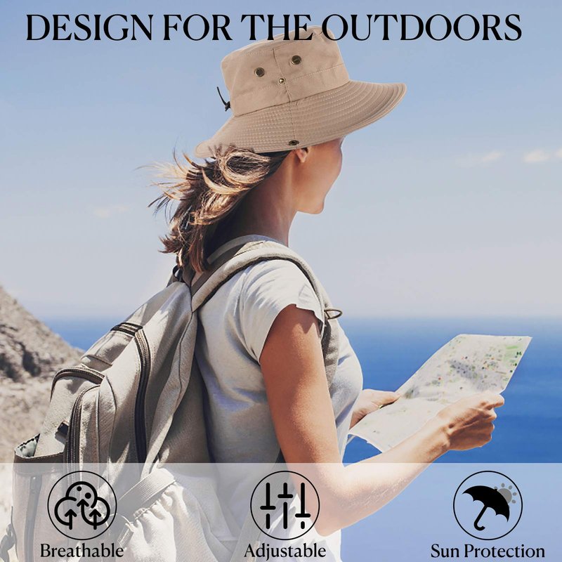 Sun Hats for Men Women Fishing Hat UPF 50 Wide Brim Boonie Hats for Safari Beach Summer UV Protection Bucket Hat Beige