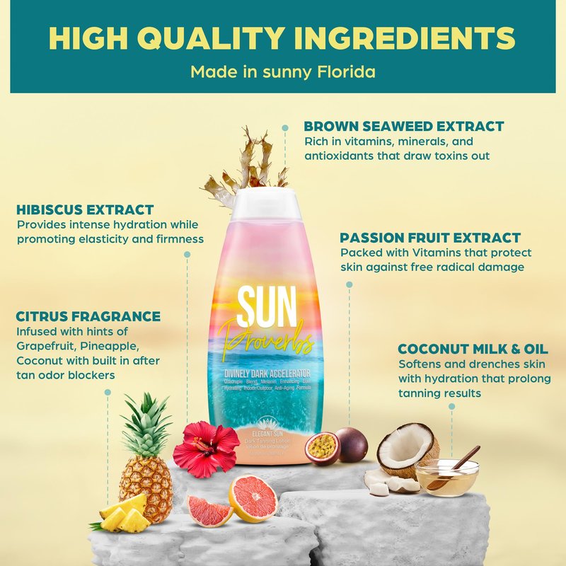 Sun Proverbs, Tanning Bed Lotion, Dark Tan Accelerator, Outdoor Indoor Tanning Lotion without Bronzer, No DHA White Tanning Lotion, Natural Bronzing Coconut Sun Kissed Lotion, by Elegant Sun