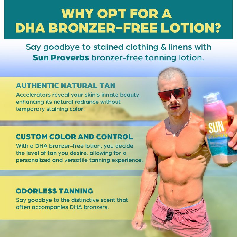 - INDOOR or OUTDOOR: We Say Both. - Who's got time to lounge around all day for that perfect tan? Not you! Whether you're a sun-worshipper or an indoor tanning aficionado, our Sun Proverbs is the ultimate tanning sidekick. It's like having a fast-pass to bronzeville. DHA Bronzer-free, and it'll have you looking like you just came back from an exotic vacay, without the long flight and touristy sunburn.