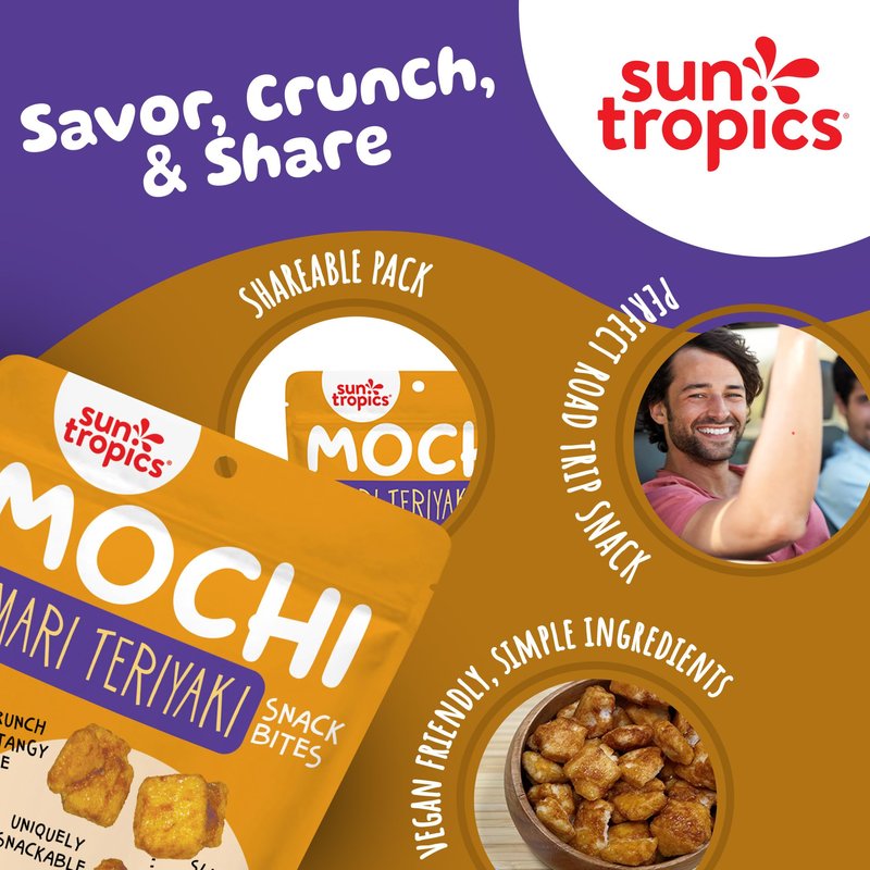 - CRISPY CRUNCHY MOCHI BITES - Bite, crunch, and share Sun Tropics Traditional Asian rice crackers tossed in classic Sea Salt and other savory flavors. Sun Tropics Sea Salt Mochi Snack Bites are perfect for those who crave a crunchy snack. They come in 4 savory and satisfying flavor options including sea salt, Tamari teriyaki, Thai Bird Sriracha (spicy mochi), and golden curry!