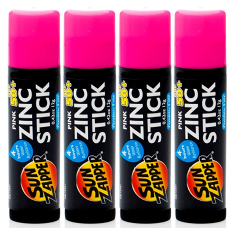 Sun Zapper Zinc Stick Mineral Sunscreen Pink SPF 50+ Water Resistant for Face & Body, Adults, Kids, 4-Pack Broad Spectrum Sun Block, Made in Australia