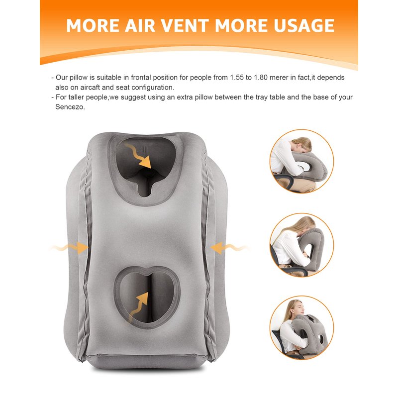 - 【Inflate And Deflate Easily】Airplane neck pillow has a 2-in-1 double valve design.The upper black air valve is a one-way air inlet for inflating or replenishing gas.bottom transparent air valve can be quickly inflated and deflated,when you are done blowing it up, push clear cover on and push whole valve in so that it is flush with the side of the travel pillow.