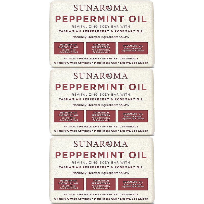 Sunaroma Peppermint Oil & Rosemary Body Bar Soap, 8 Ounce (Pack of 3)