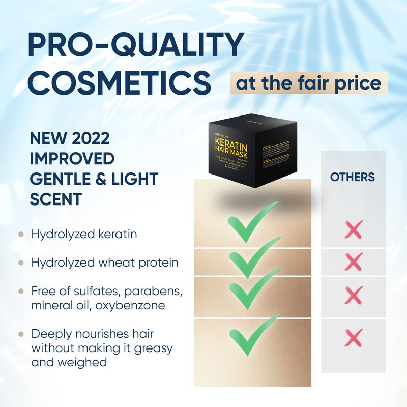 - Revitaliza tu cabello con nuestra mascarilla para el cabello. Tratamiento para cabello seco y maltratado, nutre profundamente. Acondicionador para cabello con keratina para alisar el pelo. Protector de calor para el cabello