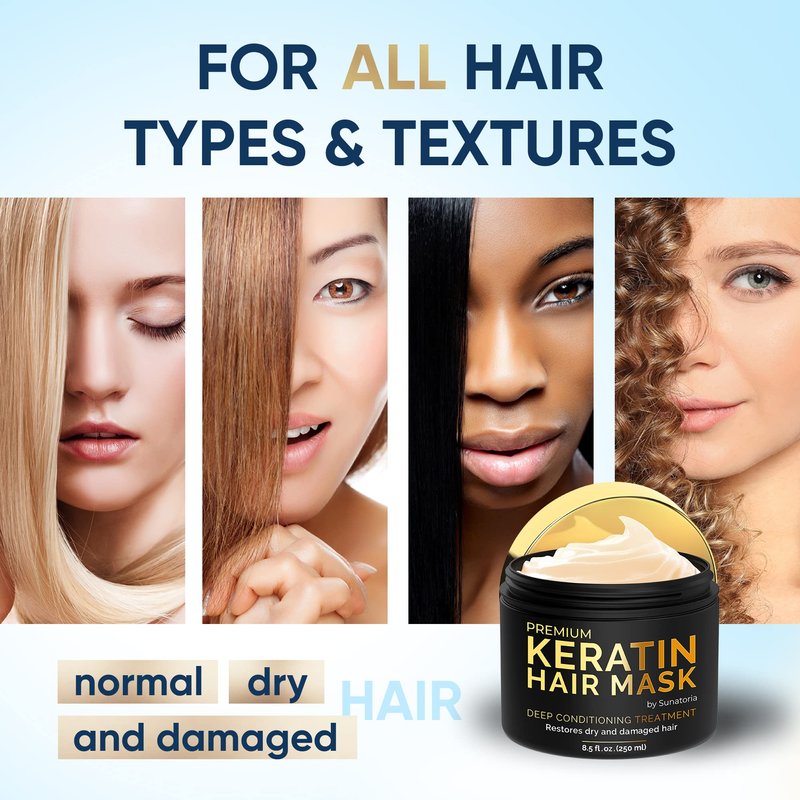 SUNATORIA Deep Conditioning Hair Mask - Keratin Hair Treatment - Deep Conditioner for Dry Damaged Hair - Keratin Hair Mask - All Hair Types - Vitamin E, Omega 3, 9