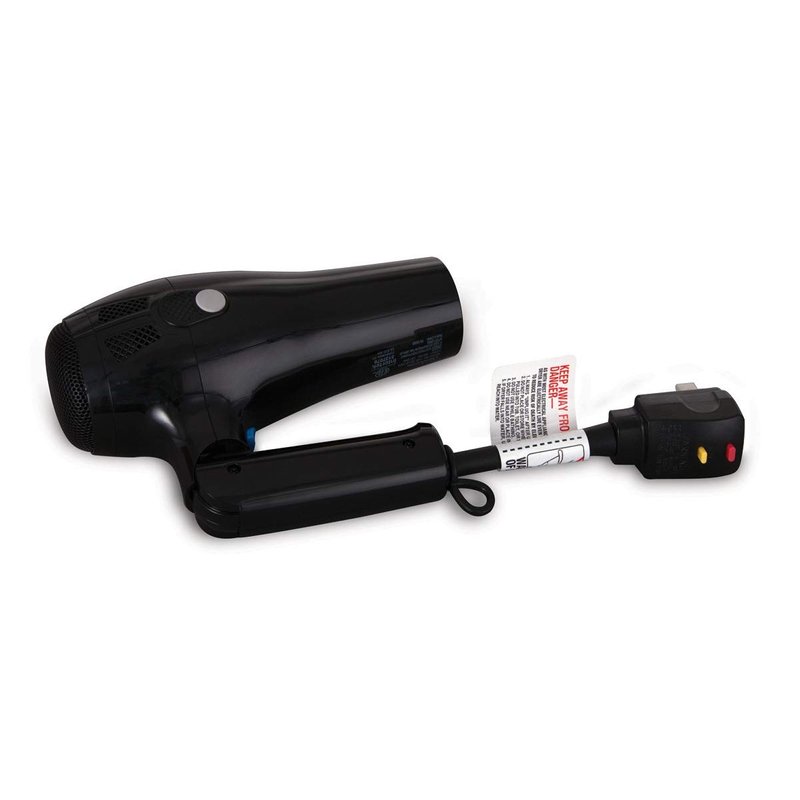 - 1875 watt handheld hair dryer, stores conveniently with folding handle.