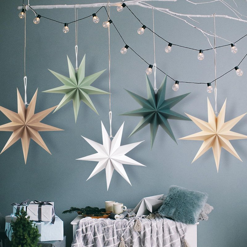 - Versatile Decor Pieces: Our 5 PCS Christmas Sage Green 9-Pointed Paper Stars are versatile additions to your holiday decor collection. Their timeless design makes them suitable for various occasions, including Christmas parties, winter weddings, or everyday home decor. Hang them on walls, and windows, or even suspend them from ceilings to create a captivating display that will impress your family and friends.