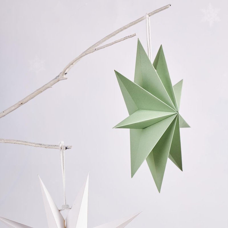 SUNBEAUTY Sage Green 9-Pointed 12 Inch Paper Star Lanterns Christmas Hanging Lamp Paper Decorations Shade Wedding Birthday Christmas Home Party Decorations