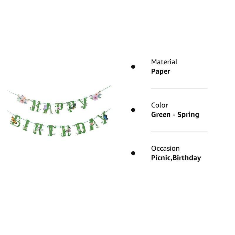 - If you’re on the fence & having a garden, flower, or butterfly theme birthday, you need this green banner to make a huge hit in your life, which will make your party a celebration worth remembering.