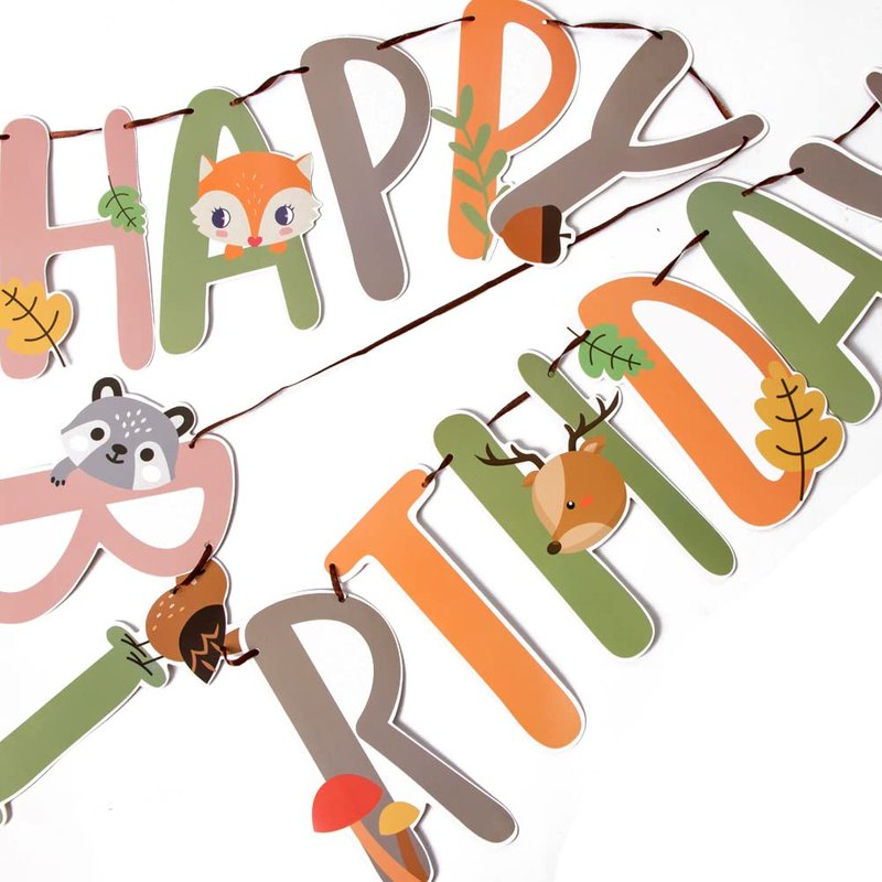 SUNBEAUTY Woodland Party Decorations Woodland Happy Birthday Banner Forest Animal Garland for Kids Boys Girls Baby Shower Woodland Birthday Jungle Party Decoration Supplies | Pre-Strung