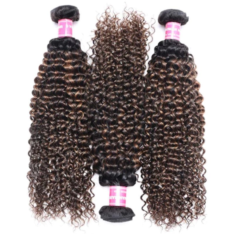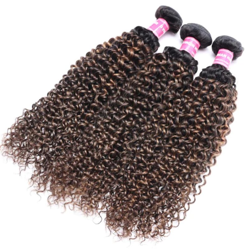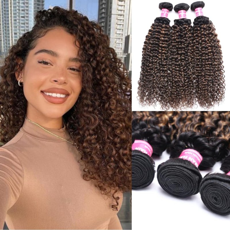 - [12A Grade Hair Quality]:Ombre brown jerry curly human hair bundles strong double weft, no shedding,no tangle,soft and silky. Thick and no split end. Hold the curls well. Can be Bleached, Dyed, Heat, Style the hair weave as you want.