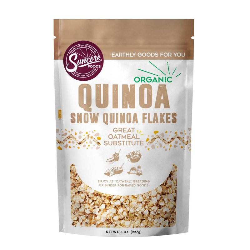 - Easy To Use - Suncore Foods Organic Snow Quinoa Flakes are carefully packaged debris-free and ready to use in a resealable pouch, so they're primed and waiting to be added to your yogurt, granola, salads, baked goods, beverages, and desserts