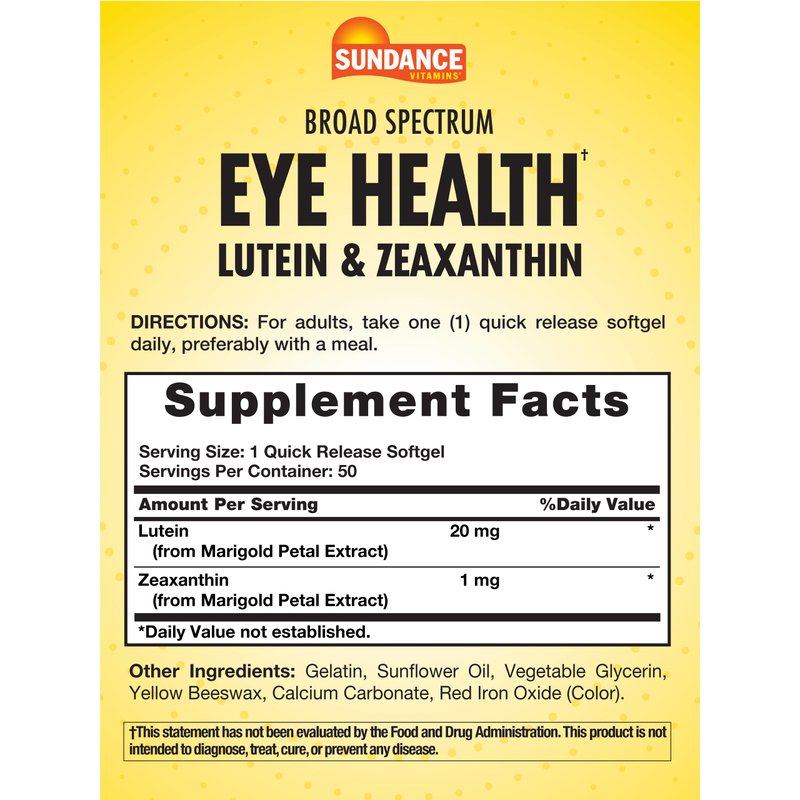 Sundance Lutein and Zeaxanthin Supplement | 50 Softgels | for Eye Health | Non-GMO and Gluten Free Formula