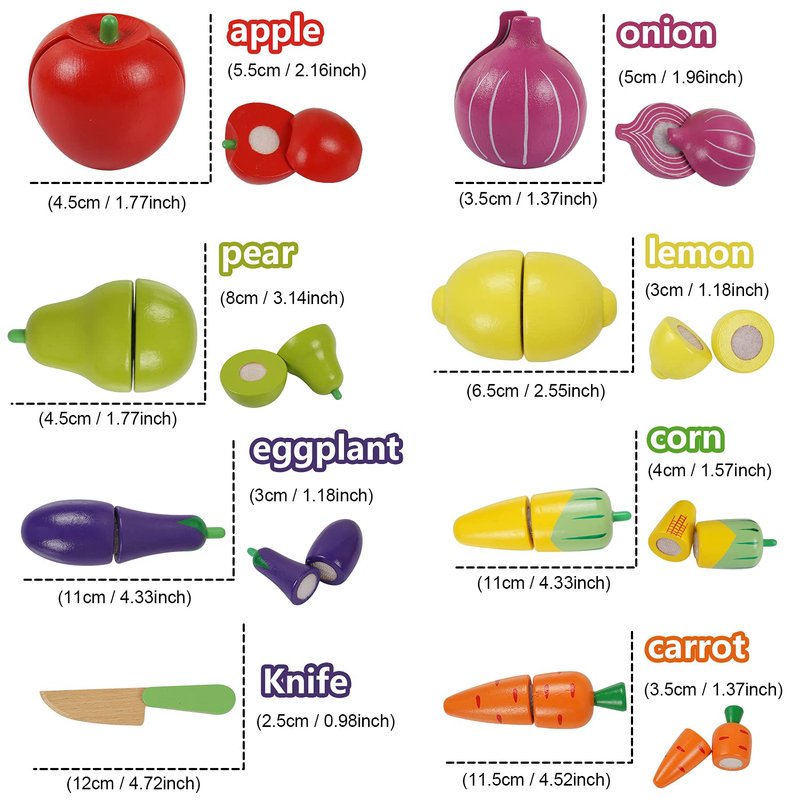 - Perfect Gift For Kids: Exquisite wooden toys are very suitable for kitchen set for kids for toddlers 3 years old. the wooden food is spread out and glued together with nylon buckles, making a "crunchy" sound when the children cut the food toys, toddler kitchen playset which can bring the children a realistic feeling, toddler cooking set is the best gift for preschoolers and toddlers for birthdays, if you are not satisfied, please contact us.