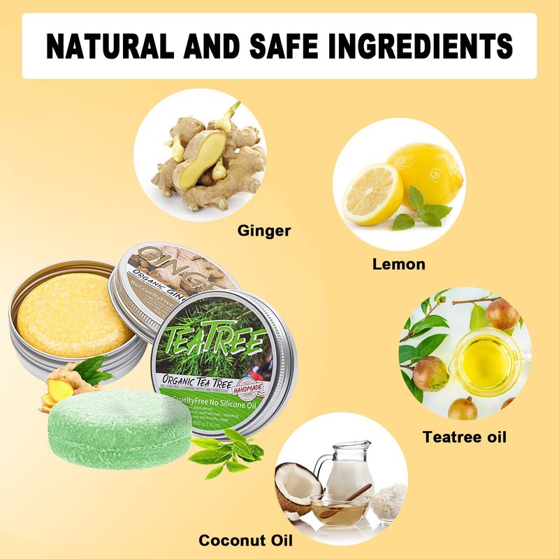 - 🌿【NATURAL INGREDIENTS】- Our ginger shampoo soap and tea tree shampoo bar are gentle and does not hurt the scalp.Contains pure natural ingredients such as ginger,lemon and tea tree oil