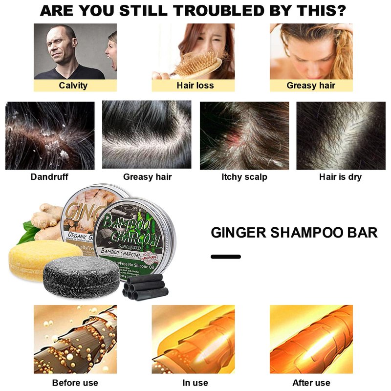 - 🌿【NATURAL INGREDIENTS】- Our ginger shampoo soap and bamboo shampoo bar are gentle and does not hurt the scalp.Contains pure natural ingredients such as ginger,lemon and bamboo oil