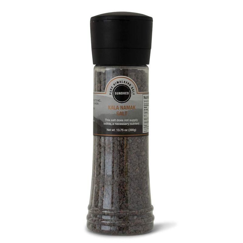 Sundhed Himalayan Black Rock Salt Kala Namak (Course) in Grinder | 390 Grams (13.75 oz) | Natural Vegan Seasoning