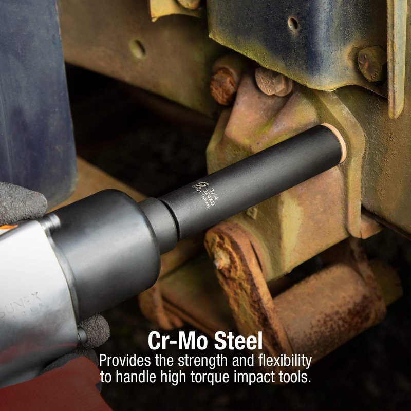 - - CR-MO STEEL: Provides the strength and flexibility to handle high torque impact tools.