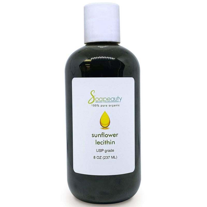 - SOAPEAUTY PREMIUM SUNFLOWER LECITHIN LIQUID OIL: Organic Cold Pressed Unrefined 100% Pure Natural Sunflower Lecithin Oil with NO additives or carriers added. Sunflower Lecithin Oil is a common ingredient in many organic cosmetic skin care products, moisturizers, body lotions, creams, makeup, etc.