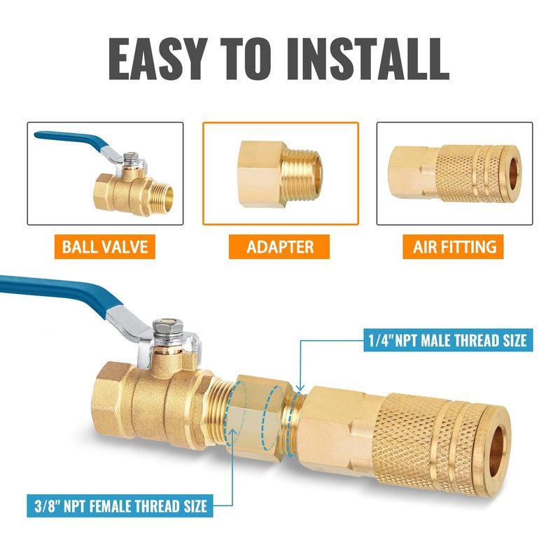 - ▶【PACKAGE INCLUDES】: 1/4 inch male to 3/8 inch female NPT brass reducer pipe fitting adapter X 2.