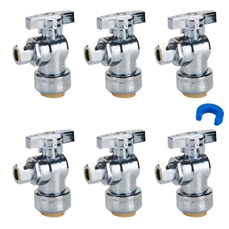 SUNGATOR 6-Pack Angle Stop Valve, Angle Water Shut Off Valve 1/2 x 1/4 Inch Compression, Toilet Water Valve, 1/4 Turn, No Lead Brass Push to Connect Plumbing Fitting, Pushfit, PEX Pipe, Copper, CPVC