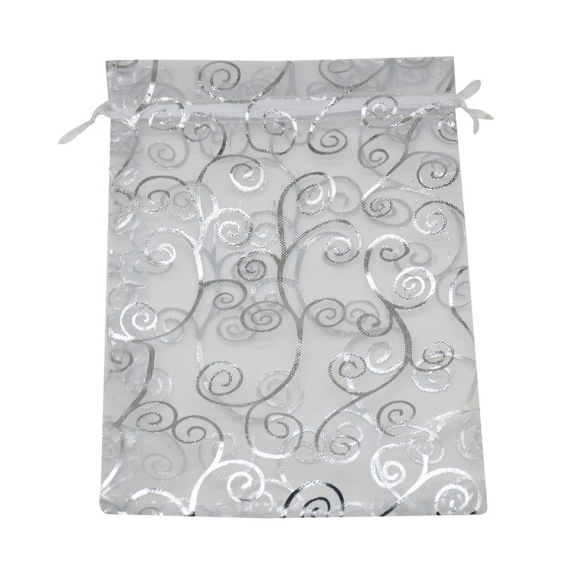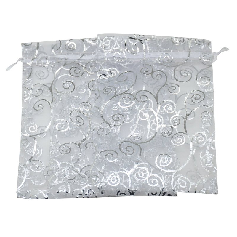 SUNGULF 100pcs Organza Pouch Bag Drawstring 4x6 10x15cm Strong Gift Candy Bag Jewelry Party Wedding Favor (White with Silver)