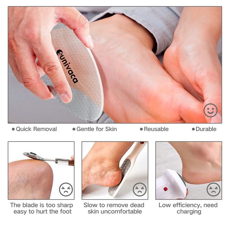 - Sunivaca Foot Files for Hard Skin can buff away Dead, Hard, Dry Skin and Callous easily. You can have a Pedicure at home and get Professional Salon Long Lasting Results.