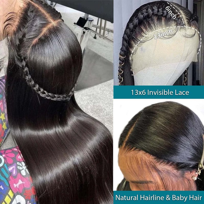 - 3.Lace Frontal Wigs Quality:180% Density straight Human Hair Wigs Full and Thick, True to Length and Weight. No Smell, No Shedding,Tangle Free.