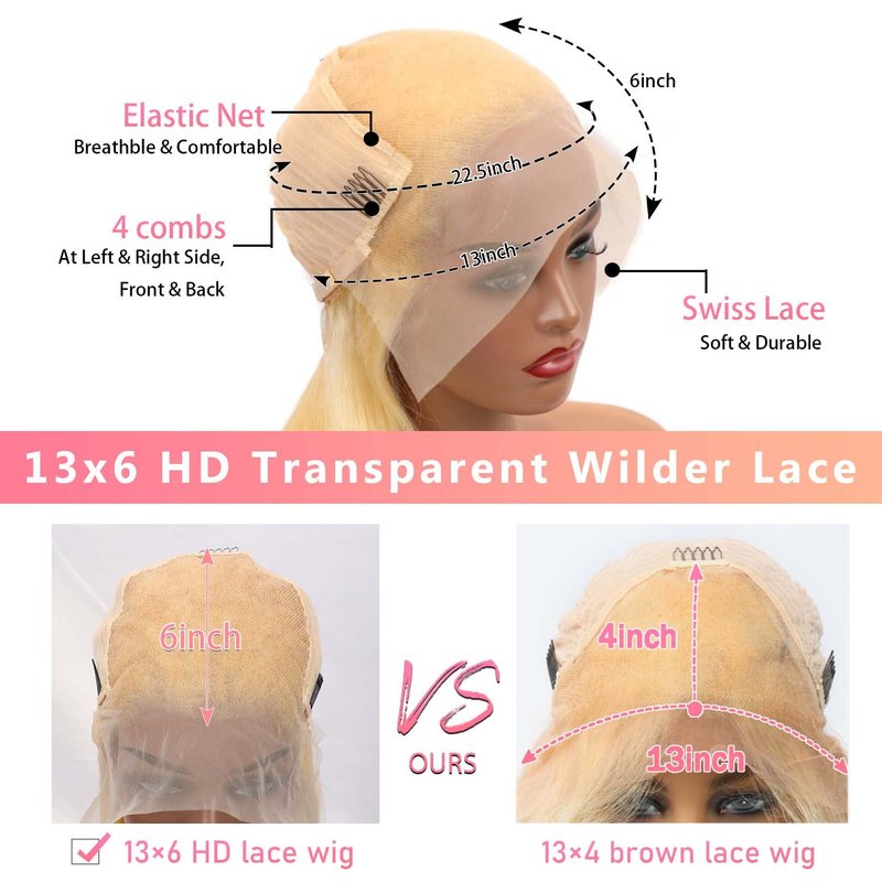 - 4.613 13x6 Lace Front Wig Human Hair【Details】: Blonde Wig Human Hair Can Be Dyed, Bleached, Restyled.13x6 Lace Frontal Wigs Gives You More Parting Space and Lace Melt Down More Easily, Can Make High Ponytail & Bun.