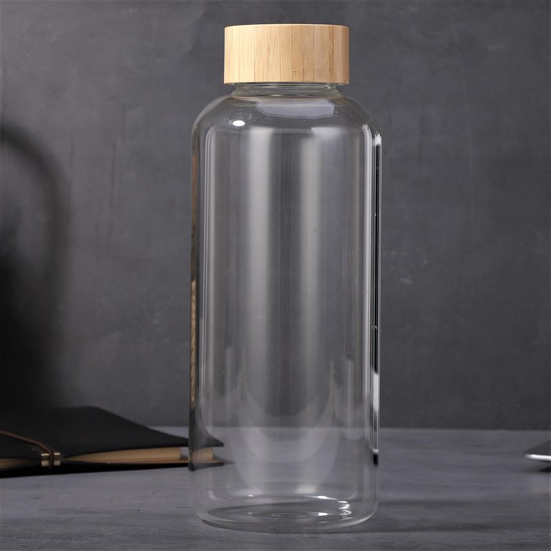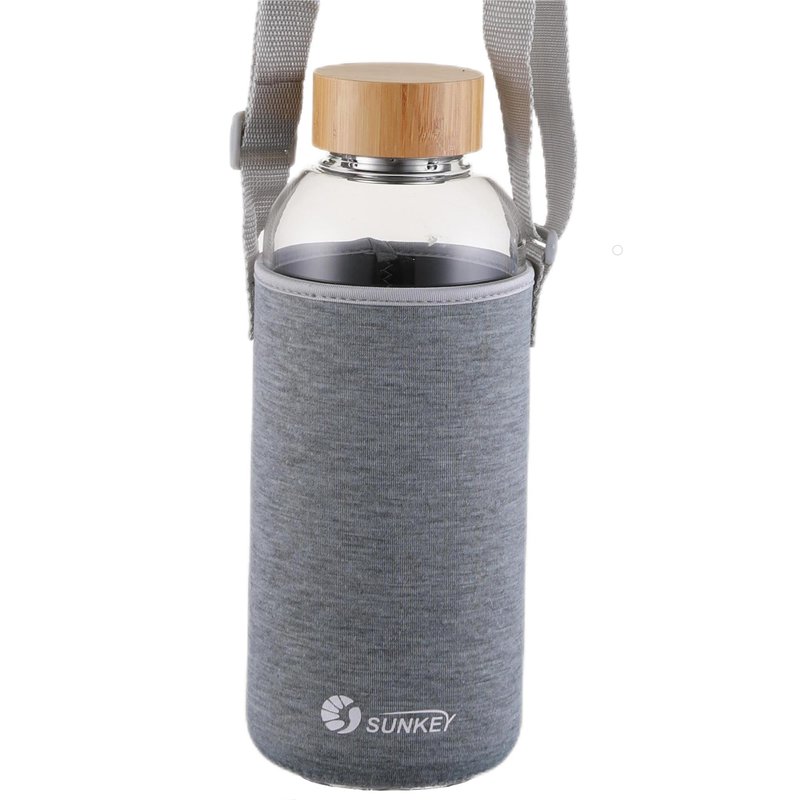 sunkey 50 Oz Glass Water Bottle Wide Mouth with Bamboo Lid Neoprene Sleeve