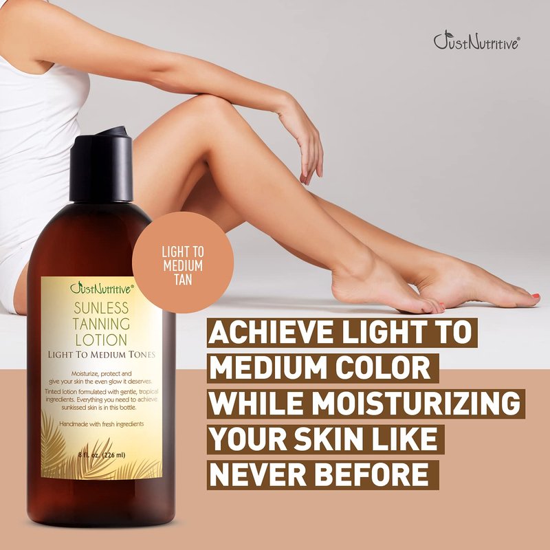 Sunless Tanning Lotion - Light to Medium tones | Indoor Self- Tanner | Body Tanning Lotion | Sun- Kissed Glow| Bronzer Lotion For All Skin Types |Just Nutritive | 8 Oz