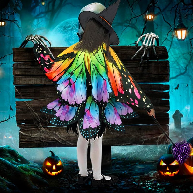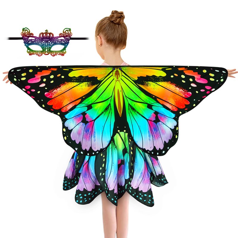 - 【Easy To Wear Take off Store】:This girls butterfly costumes is lightweight, takes up little space and fits easily in your bag. As dress up dresses and butterfly wings toddler are easy to put on and take off, Just attach the elastic band, then wrap the loops around your fingers, put on the mask and gently wave your arms, the soft butterfly cape will fly up like butterfly wings, making you look like a beautiful butterfly fairy. You can swing freely like a butterfly for an immersive effect.