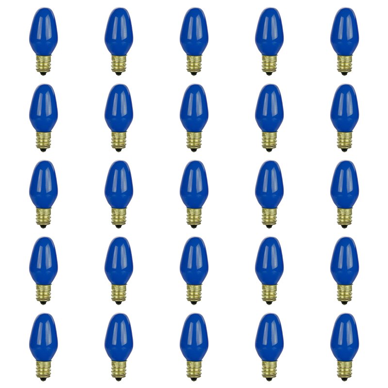 Sunlite 01255 7C7 Incandescent Bulb, 7 Watt, Candelabra E12 Base, C7 Small Night Light, Colored Bulb, Blue, 25 Count