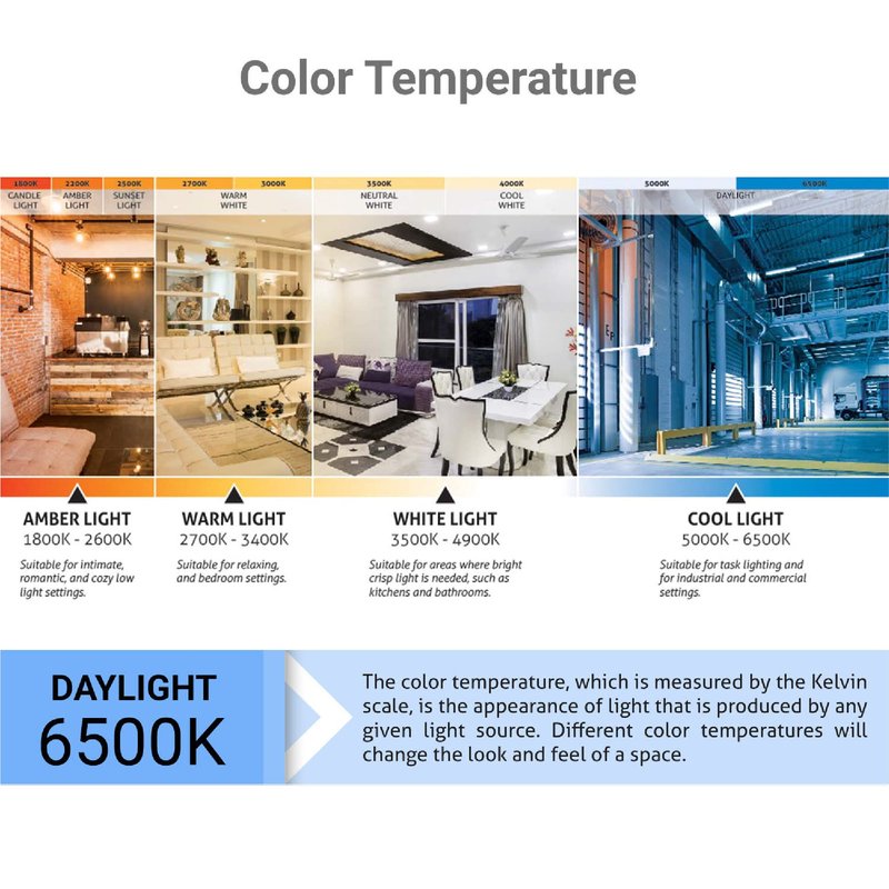 - DAYLIGHT - The 6500K color temperature and daylight color of this fluorescent lamp create a natural and crisp environment that's perfect for various settings.