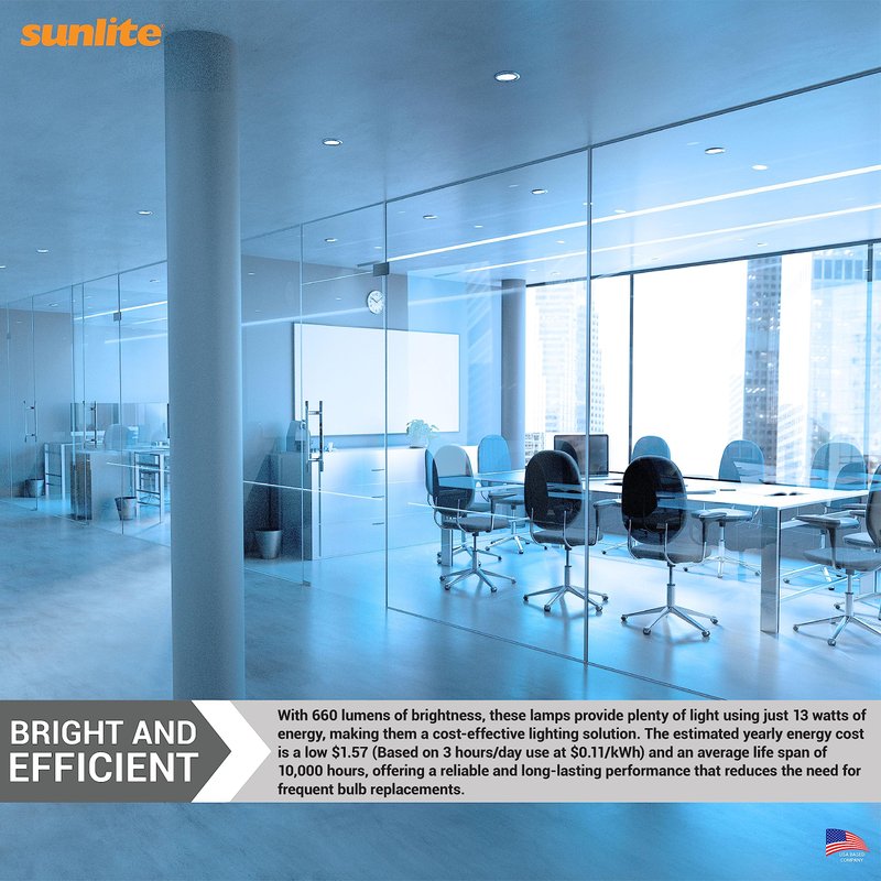 - BRIGHT AND EFFICIENT - With 660 lumens of brightness, this lamp provides plenty of light using just 13 watts of energy, making it a cost-effective lighting solution. Estimated yearly energy cost is a low $1.57 (Based on 3 hours/day use at $0.11/kWh).