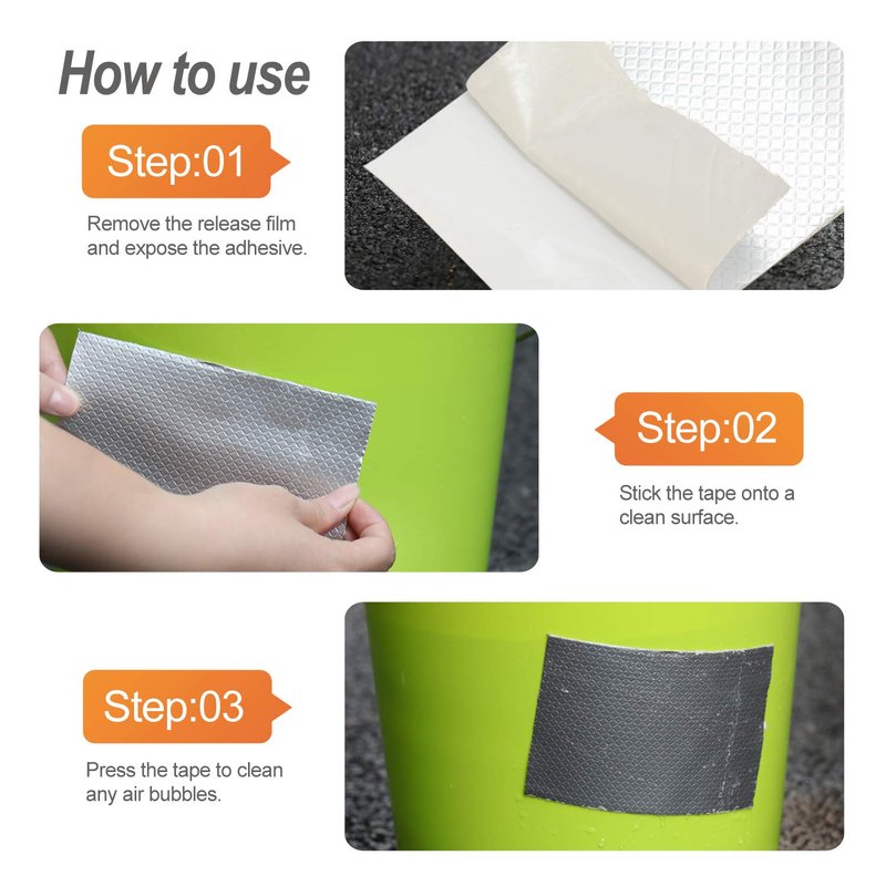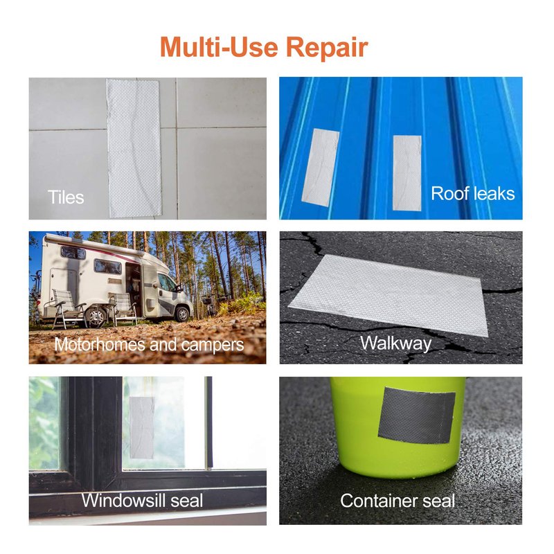 Once applied on the target object, the repair tape is tightly adhered on the surface, providing a mess-free and airtight sealing for RV, window, boat sealing, glass, glazed tile and EPDM rubber roof patching and it can resist extreme temperatures from -40 ℉ to 248 ℉.