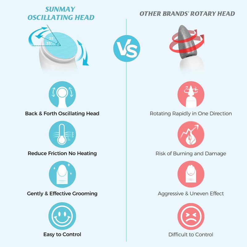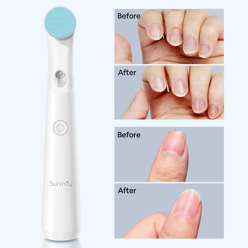 - 4-in-1 Design Electric Nail File: Sunmay upgraded electric nail buffer comes with Unique Oscillating Head with 8 Multi-Purpose Discs for Shaping, Smoothing, Buffing & Shining, removing calluses and dead skin. This rechargeable nail file can remove gel nail polish, poly nail gel, and acrylic nails. It can buff out your natural nails nicely and smoothly, removing nail ridges, old gel and even smoothing out cracked corners on your fingers, achieving salon-quality manicures and pedicures at home.
