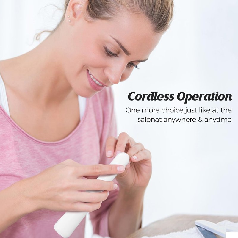 - Unique Oscillating Head: This nail file electric abandons the traditional cordless nail drill which rapidly spins in one direction, causing intense heat and friction. Instead, our cordless nail file is designed with a unique oscillating head that can make back and forth movement, gently and effectively grinding and precisely shaping nail manicures without damage. You will get a perfect, neat, clean, and well-shaped nail finish.