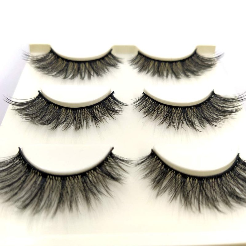Sunniess Hair Imported Korea Fiber Faux Mink False Eye lashes Handmade Reusable Long Cross Volume Dramatic Lashes Natural Look Makeup Thick Black Fake EyeLashes