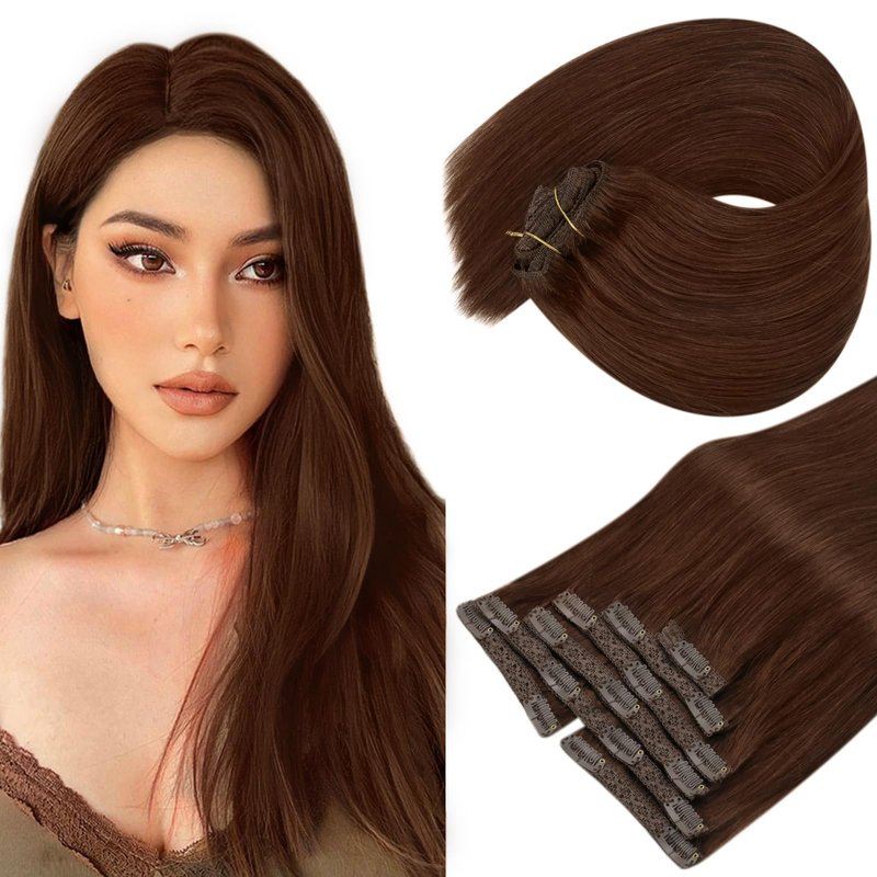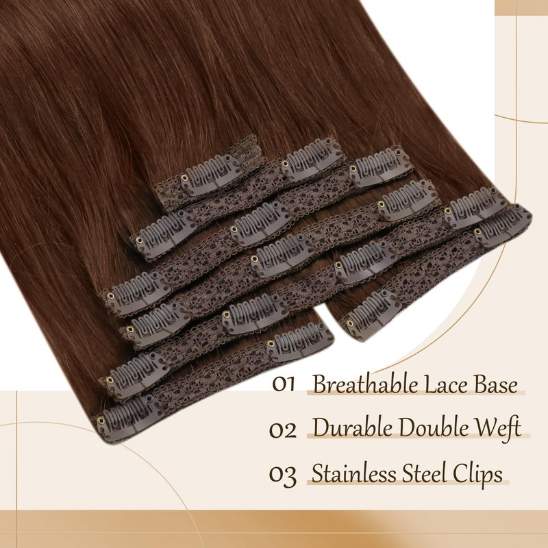 - [Sunny Product Upgrade] Most of real hair extensions clip in human hair auburn now feature the latest 7-piece specification: 1 pc/ 4 clips, 2 pcs/ 3 clips, 2 pcs/ 2 clips, and 2 pcs/ 1 clip. The number of 1-clip pieces has been increased from 1 to 2, providing customers with greater flexibility in positioning when wearing. Hair weight and pieces remain unchanged in the previous version, ensuring no impact on usage.