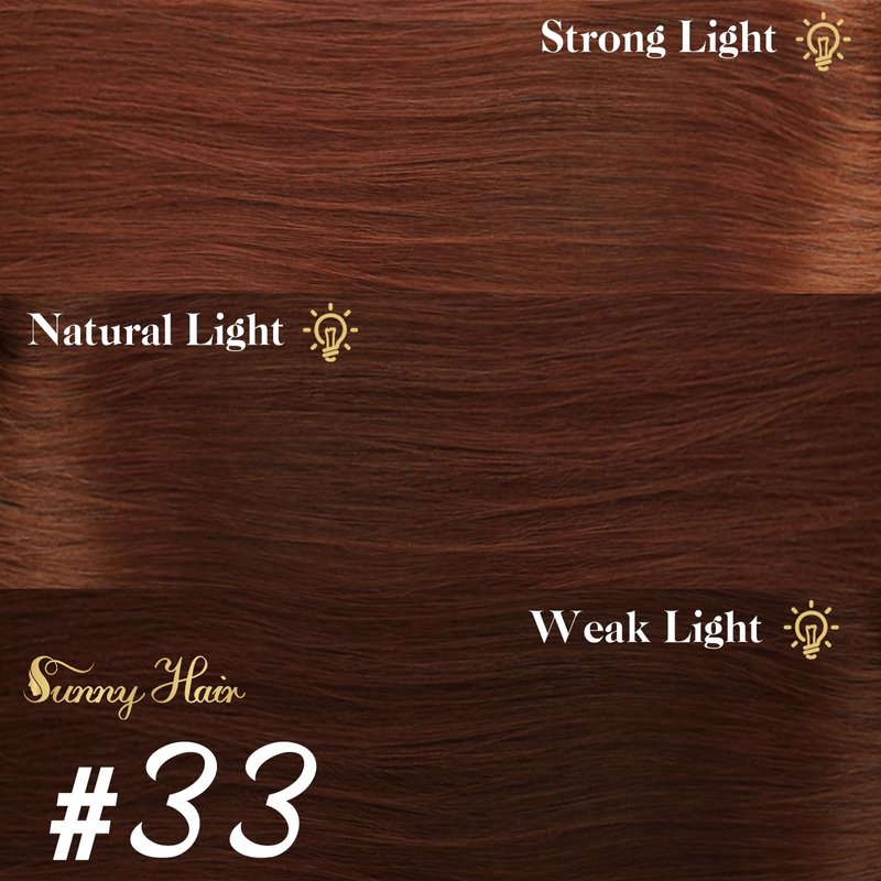 - [Sunny Product Color] The difference between Color 33 and Color 350 is that orange copper leans more towards an orange tone, while auburn red is more of a deep red tone with hints of brown. Orange copper has a vibrant, fiery look, while auburn red has a more subtle and natural look. Note that image colors may vary slightly due to lighting and screen resolutions.