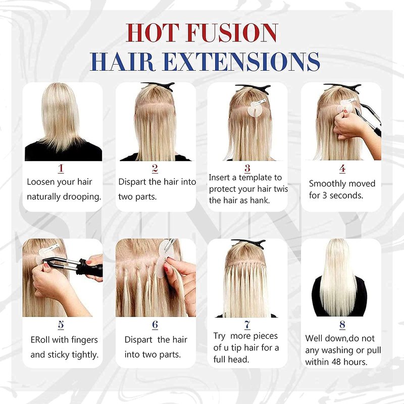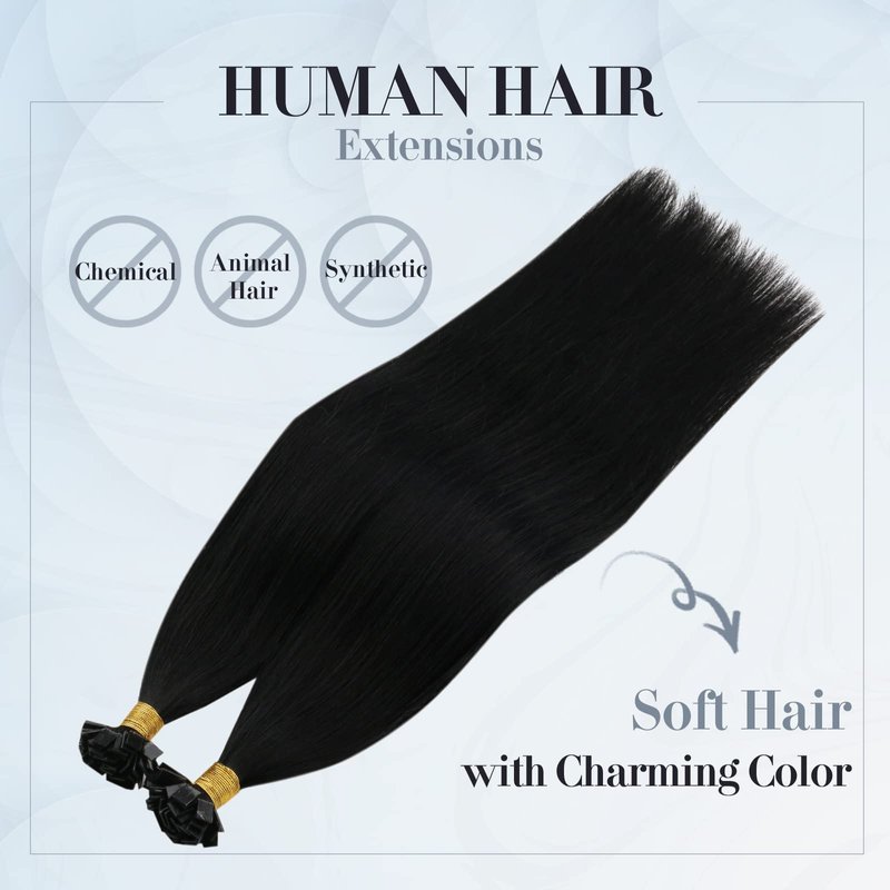 - Easy to apply:Flat tip human hair extensions feature a pre-bonded keratin tip that makes them simple and quick to apply. Just slide the tip into your natural hair, and secure it with a heat tool.
