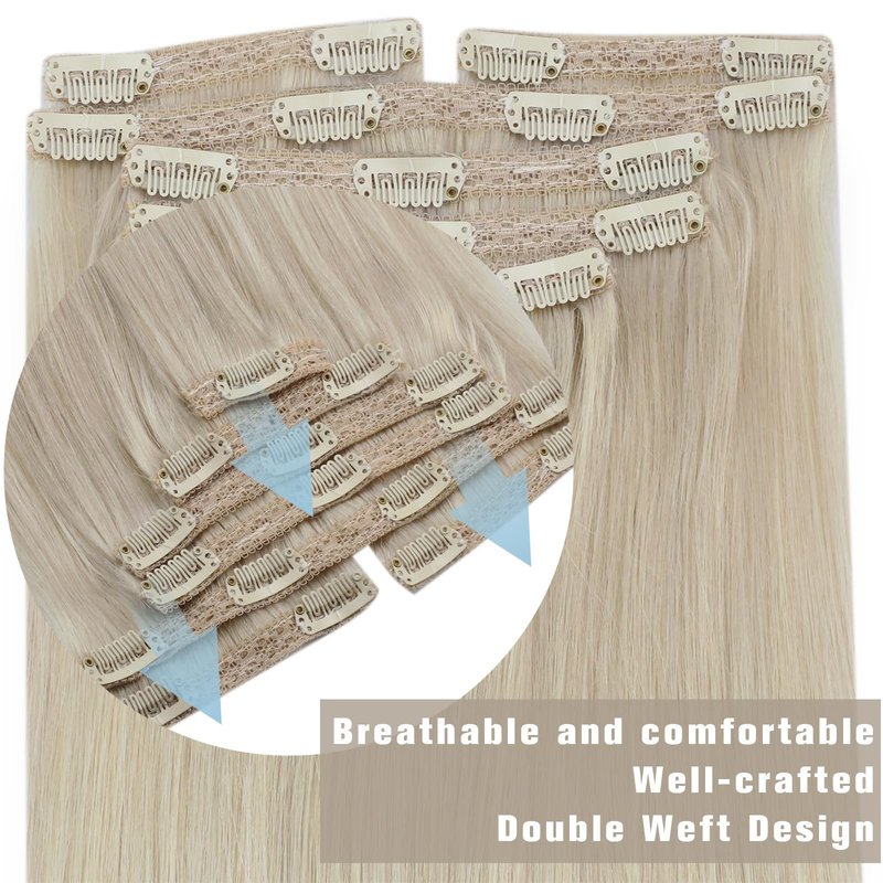 - 【Dimensions & Weight】 Ranging from 14-22 inches in length and weighing just 70 grams, these human hair clip in extensions are impressively light yet voluminous. The package includes 48 clips. Please note, the longer the extension, the thinner the ends might appear.