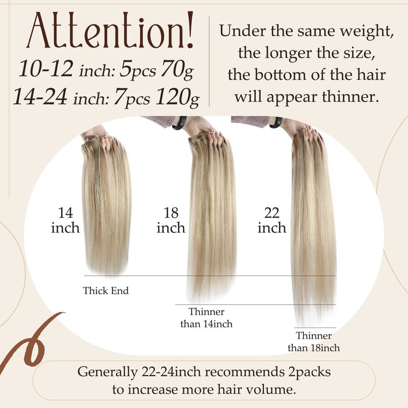 - [Sunny Product Upgrade] Most of real hair extensions clip in human hair ombre now feature the latest 7-piece specification: 1 pc/ 4 clips, 2 pcs/ 3 clips, 2 pcs/ 2 clips, and 2 pcs/ 1 clip. The number of 1-clip pieces has been increased from 1 to 2, providing customers with greater flexibility in positioning when wearing. Hair weight and pieces remain unchanged in the previous version, ensuring no impact on usage.