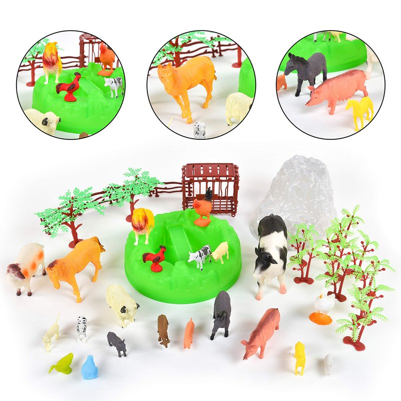 - 56 PIECES: This playset includes cows, horses, pigs, chickens and many other species! The different shaped trees, fencing and crate help to create a fun farmland.