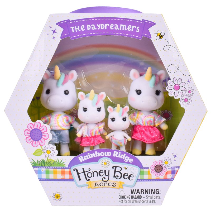 Sunny Days Entertainment Honey Bee Acres Rainbow Ridge Daydreamers Unicorn Family – 4 Miniature Flocked Dolls | Small Fantasy Collectible Figures | Pretend Play Toys for Kids