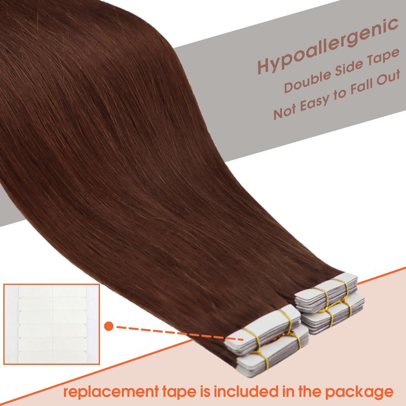 3- Reusable: the auburn tape in hair extensions human hair are reusable simply by replacing the tapes.