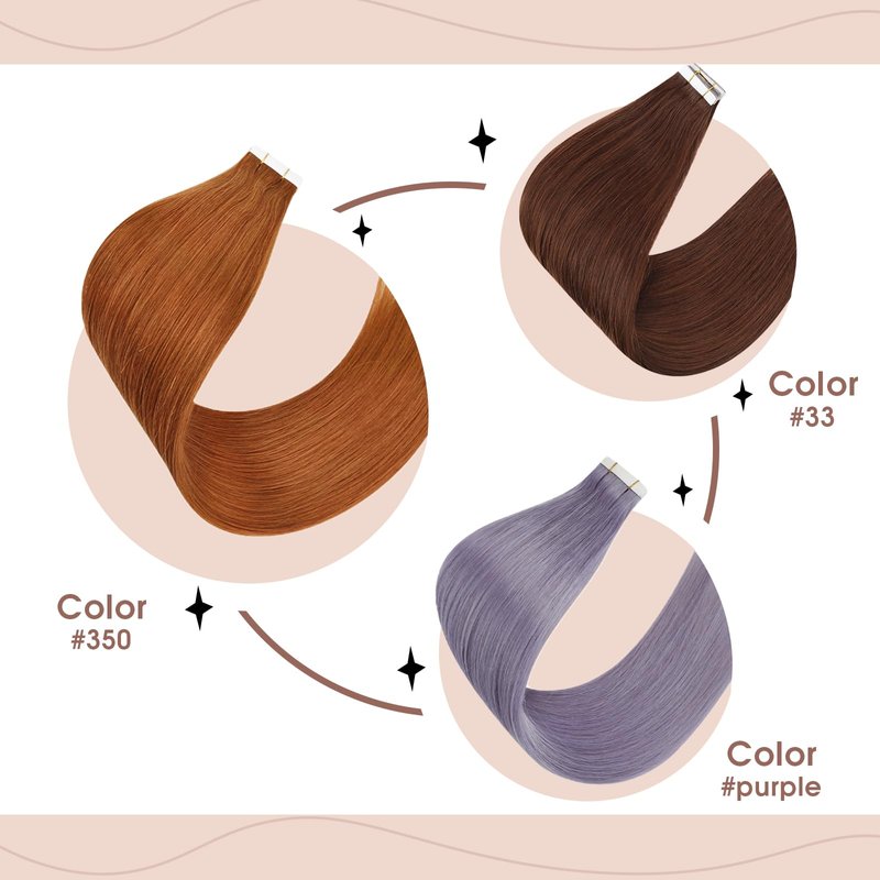 1- Hair Color: Our tape in hair extensions could be dyed to darker color by professional dyeing process, but we don't suggest double dyeing process, because unprofessional dyeing process would greatly shorten hair lifespan and affect hair quality.