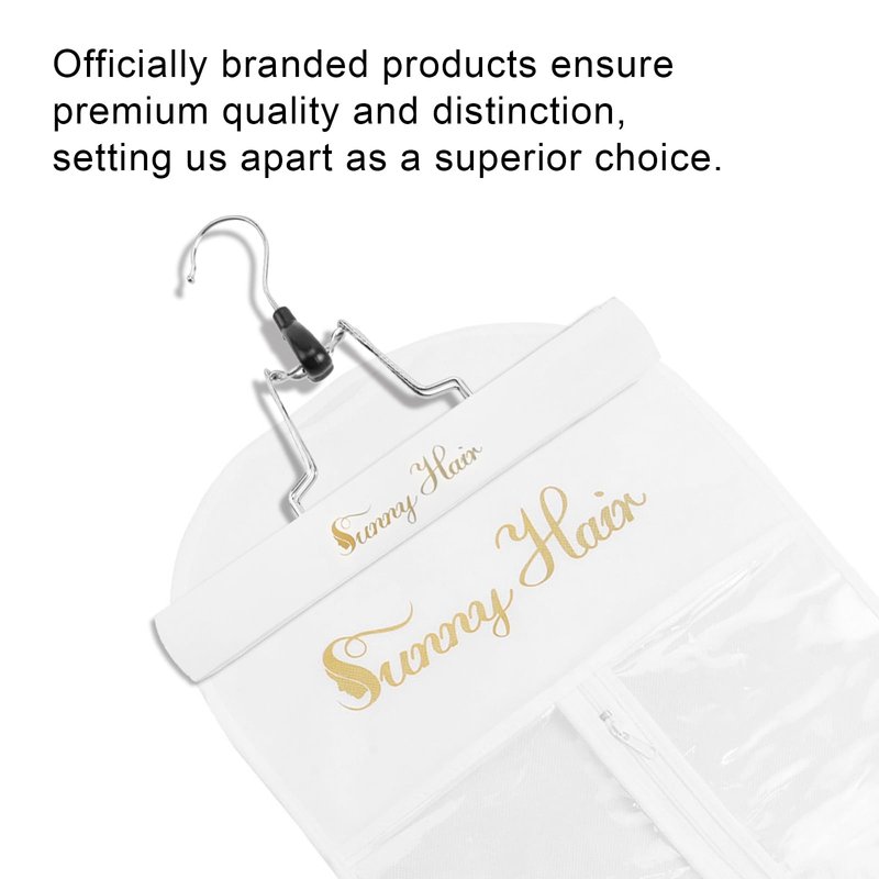 Sunny Hair Extensions Hanger with Dust-Proof Storage Bag Holder Hair Extensions Hairpieces Waterproof Portable Suit With Transparent Zip Up Closure White Color 1 Set