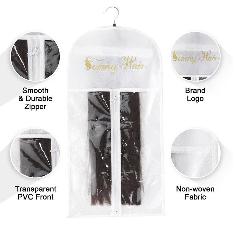 - Durable Material: Made of non-woven fabric, design by front transparent plastic, it is easy to distinguish your hair extensions. Smooth and long-lasting zipper, won't break or jam after a few uses! The hanger is made of wooden and metal. Double anti-slip Cushions can hold bundles well.